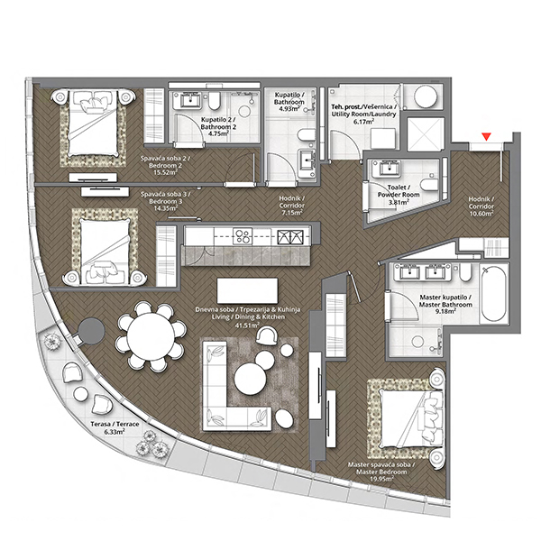 The Residences at The St. Regis Belgrade odlikuju se izvrsnim dizajnom čiji se luksuz oslikava u svakom detalju. Stanovi pružaju vrhunsku funkcionalnost i predstavljaju oazu mira za one koji veći deo dana provode u gradskoj džungli. Pažljivo odabrana umetnička dela, teksture i materijali u celom objektu, inspirisani su rekom Savom i duhom Beograda.